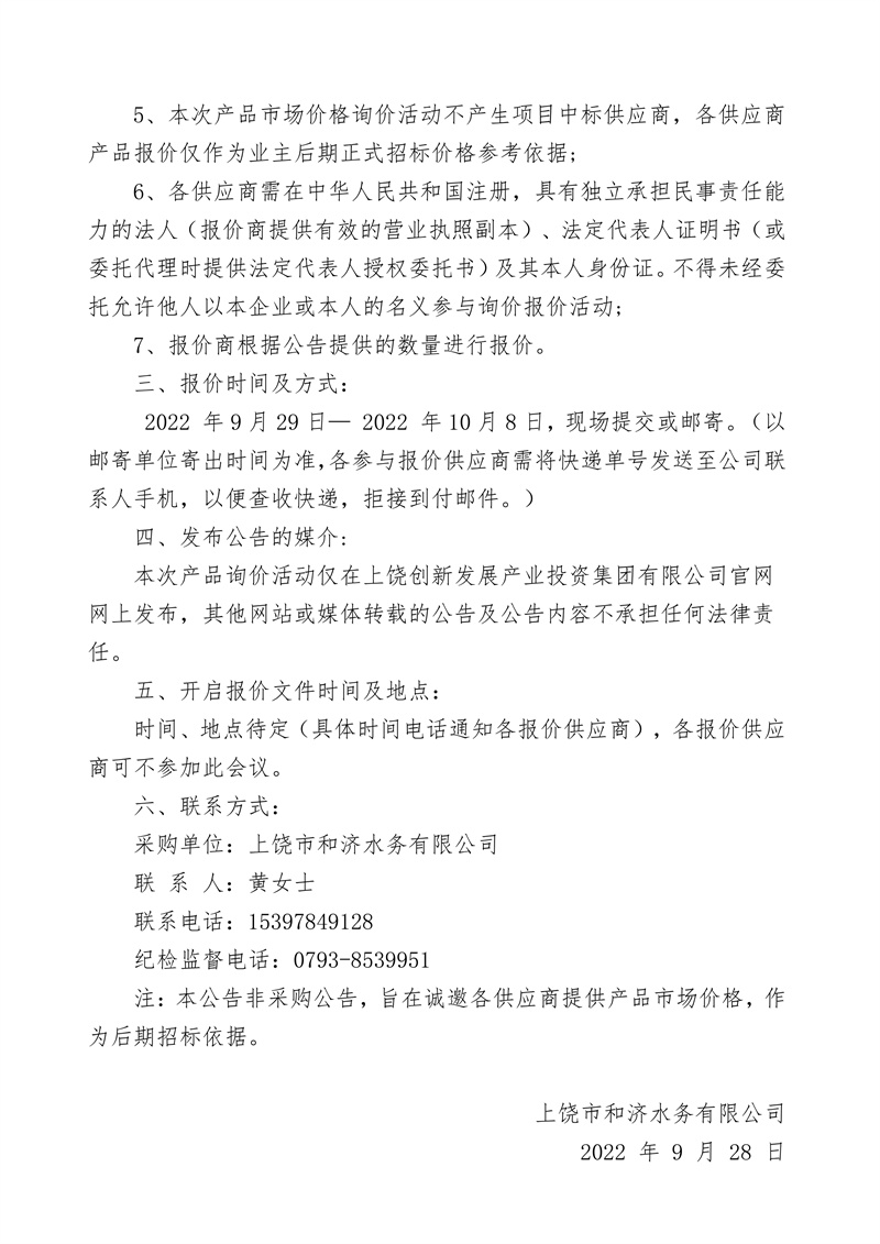 江西中誠(chéng)招標(biāo)咨詢有限公司關(guān)于上饒市和濟(jì)水務(wù)有限公司集中式飲用水源地水質(zhì)自動(dòng)檢測(cè)站建設(shè)項(xiàng)目詢價(jià)公告